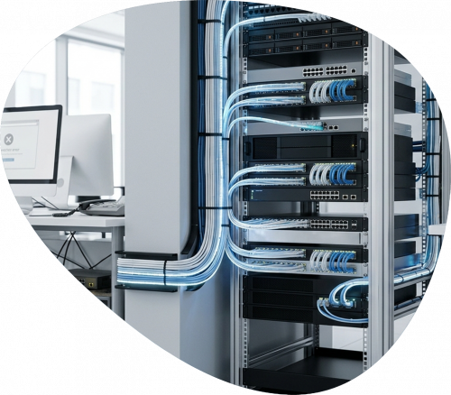 Wir übernehmen die fachgerechte Einrichtung Ihrer Hardware. Vom leistungsstarken Server im Rack bis zum komplett eingerichteten PC-Arbeitsplatz für Ihre Mitarbeiter – betriebsbereit und optimiert.